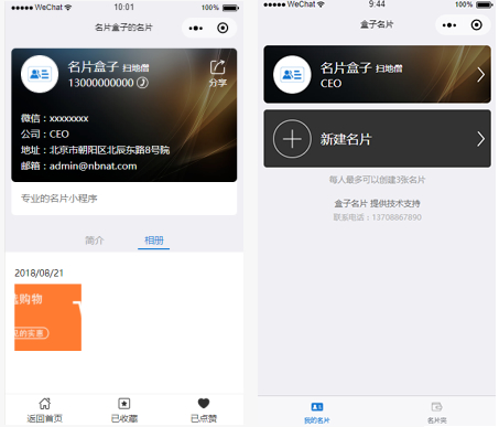 版本号: 名片盒子 1.0.3 小程序前端+后端