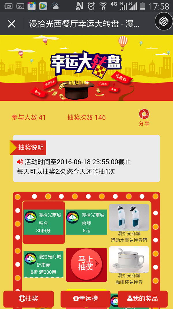 版本号:2.6.2-幸运大转盘抽奖码版