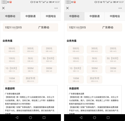 【充值对象】仅限广东移动用户,充值前保持基本话费余额不低于10元,避免在充值到账前欠费停机。其它省份用户无法充值。