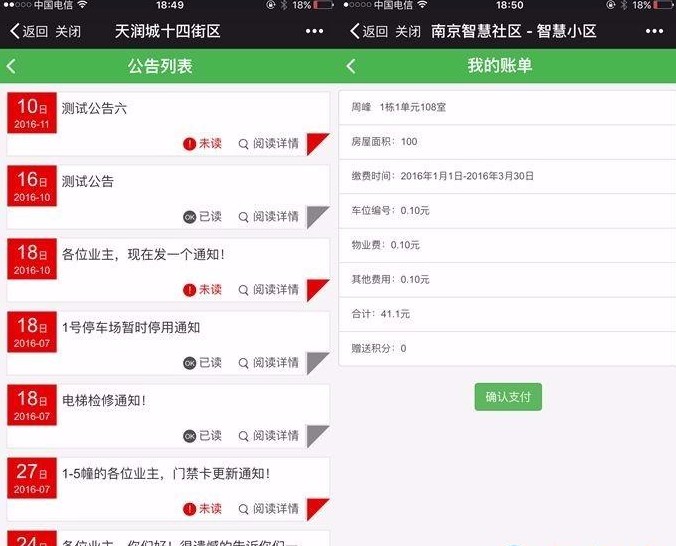 6、智慧停车(在线续费月租车、定时提醒业主欠费信息)