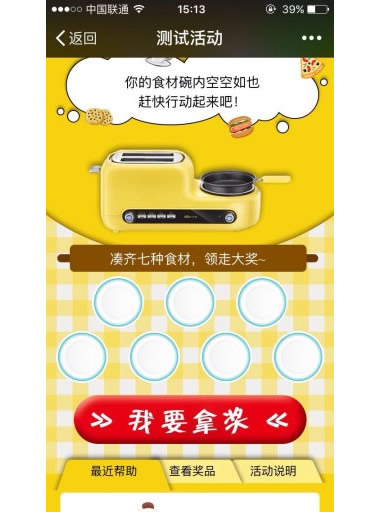 所有食材名称,图片,获得几率都可以自定义设置。也就是说,你可改在后台设置成收集年画(春节活动)、字(广告语句)、月饼(中秋活动)、酒瓶(酒品广告)等等收集活动。