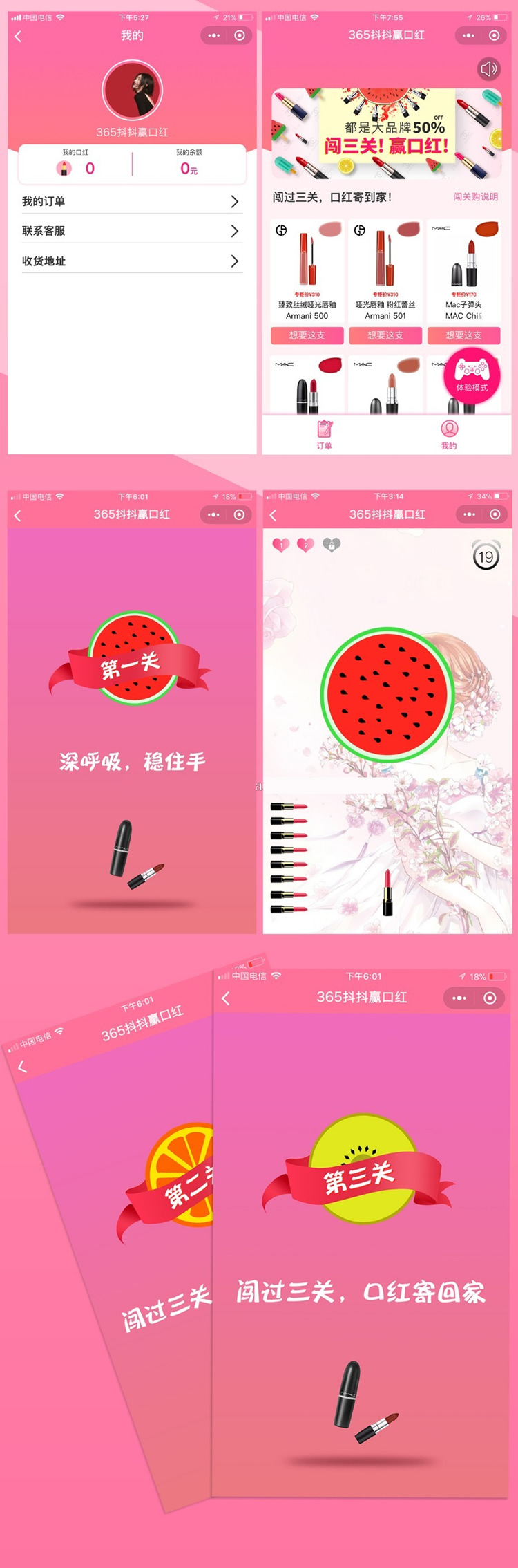 支持相应的金额,然后开始闯关,连闯三关即可将想要的口红领回家!!!