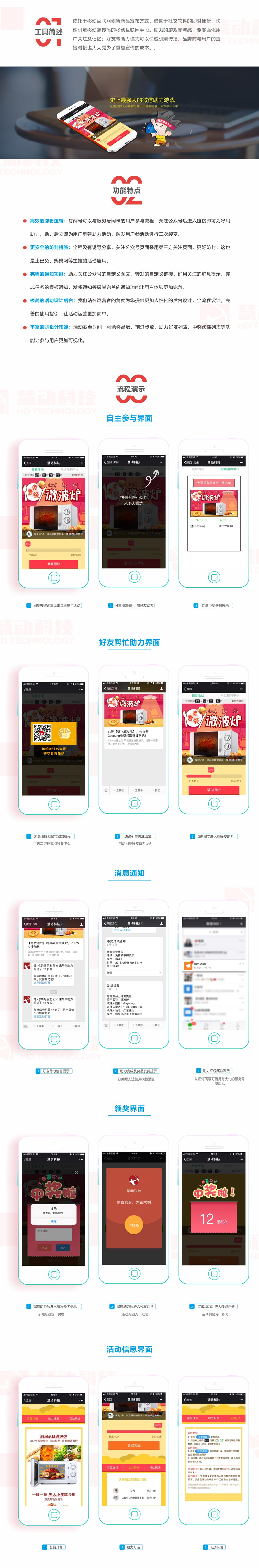 微擎微赞通用功能模块 慧动助力宝V1.3.0 新增添加海报邀请 功能特点: 1、高效的涨粉逻辑:订阅号可以与服务号同样的用户参与流程,关注公众号后进入链接即可为好用助力,助力后立即为用户新建助力活动,触发用户参活动进行二次裂变。 2、更安全的防封措施:全程没有诱导分享,关注公众号页面采用第三方关注页面,更好防封,这也是土巴兔,妈妈网等主推的活动应用。 3、完善的通知功能:助力关注公众号的自定义图文,转发的自定义链接,好用关注的消息提示,完成任务的模板通知,发货通知等极其完善的通知功能让用户体验更加完善。 4、极简的活动设计后台:我们站在运营者的角度为您提供更加人性化的后台设计,全流程设计,完善的使用指引,让活动运营更加简单。 5、丰富的UI设计前端:活动截至时间,剩余奖品数,前进步数,助力好友列表,中奖滚播列表等功能让参与用户更加可视化。 模块更新: 版本号:1.3.0 - 运营版 添加海报邀请 修改邀请好友按钮为海报 增加一个提取活动页面链接的按钮