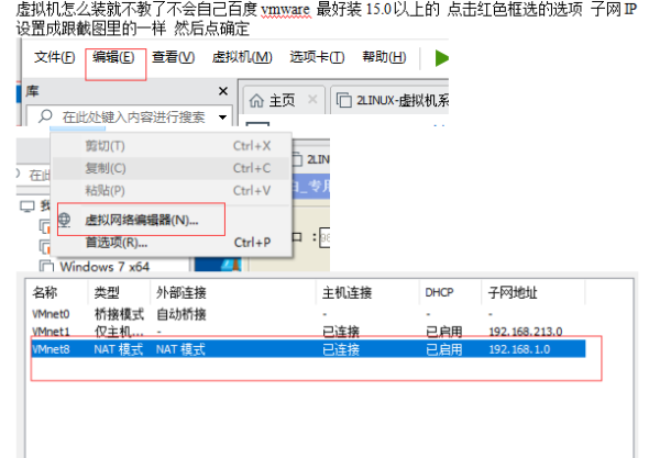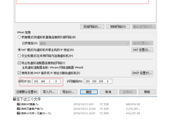 虚拟机怎么装就不教了不会自己百度vmware 最好装15.0以上的 点击红色框选的选项 子网IP设置成跟截图里的一样 然后点确定 下载改压后打开虚拟机记得选已移动虚拟机