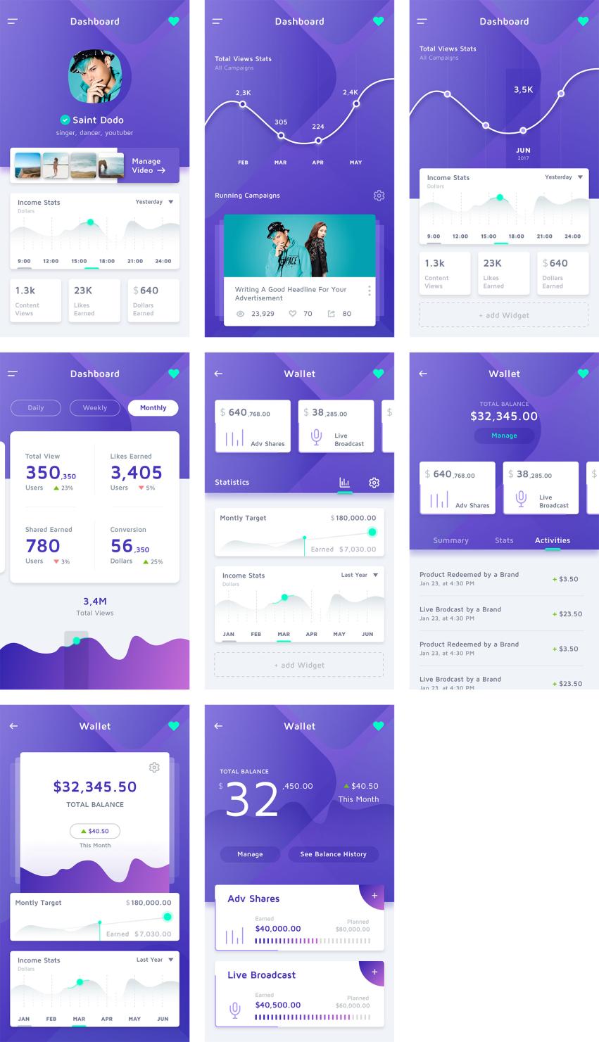 区块链APP整套数据可视化与钱包应用UI源文件