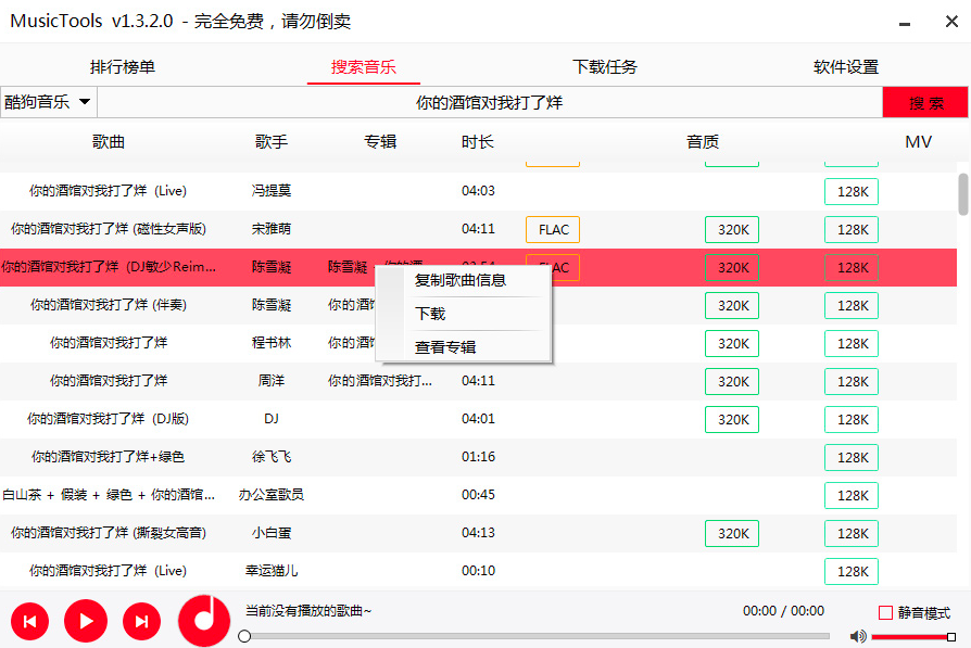 MusicTools 专门针对付费歌曲制作而成的下载工具,当你在网易云或者是qq音乐听到自己喜欢的歌曲,想下载却发现要付费的时候,你就可以使用小编推荐的这款下载工具了。软件界面简洁,使用方法简单,是一款很不错的网络音乐下载软件。软件支持批量下载,下载速度极快,喜欢的朋友可以前来下载体验哦!
