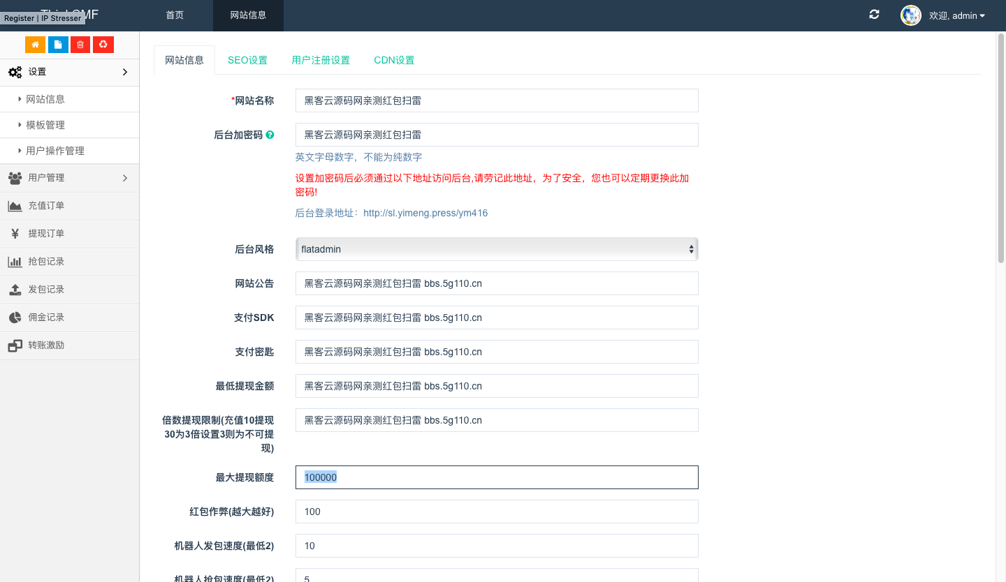 添加网站记得关闭 防跨站攻击(open_basedir) 伪静态默认thinkphp 否则不正常