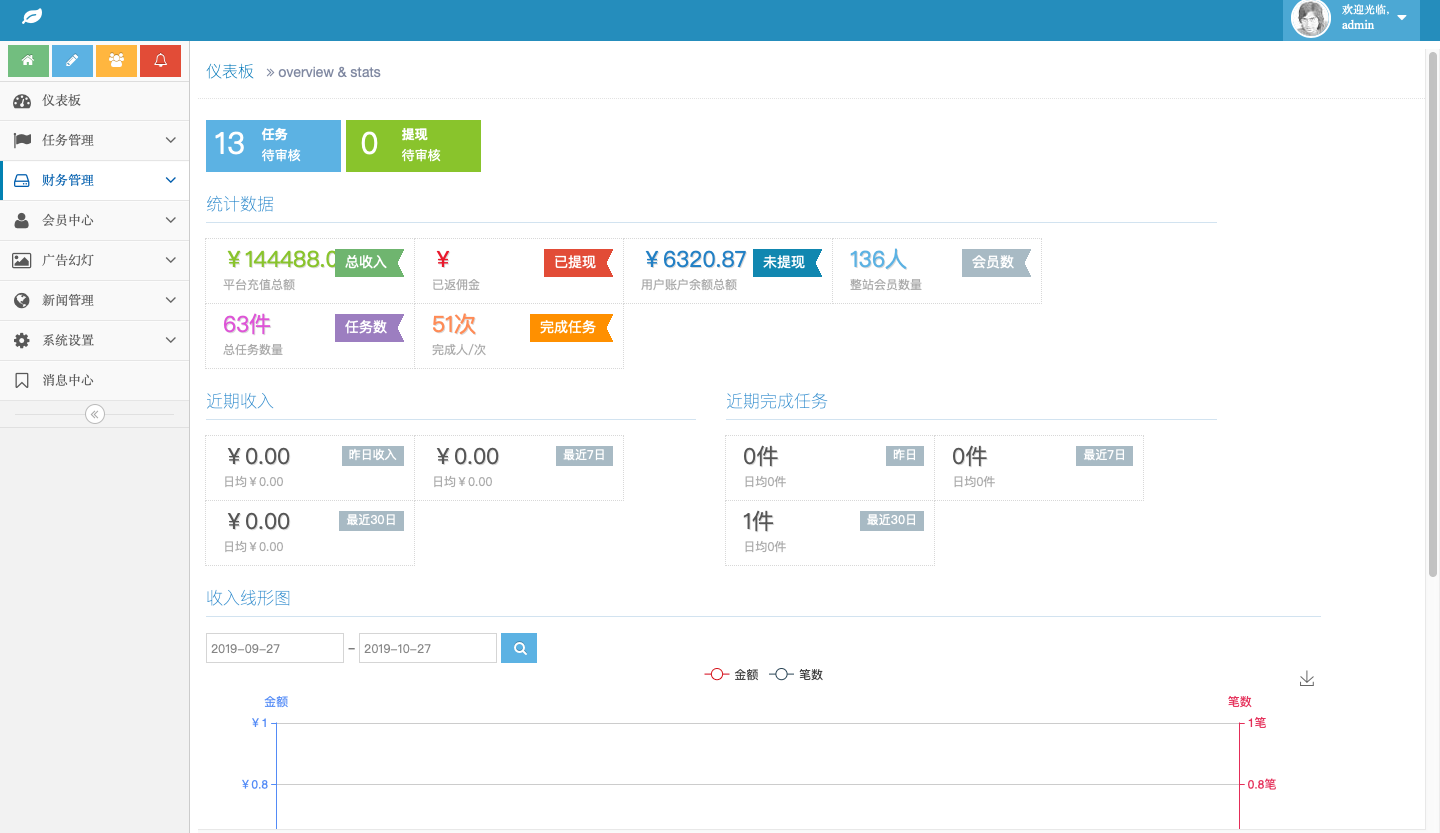 其余功能无任何差异,在官方基础之上增加了会员邮箱注册,为站长免除短信费困扰,人人可用,手机号注册已默认内嵌一个聚合短信, 暂时都能免费使用。单用户新增除快手、抖音外 ,新增自媒体类任务悬赏。 抖音点赞、关注赚钱平台,帮助短视频网红们提高人气,后台发布关注点赞任务,然后会员接单,完成有佣金,不同级别的会员每天接的数量不一样, 带三级分佣推广系统首页任务接单,主要分为抖音和快手任务关注点赞,用户可以领取符合要求的任务,复制任务打开app关注和点赞,截图提交, 后台审核通过后即可领取佣金,根据不同的等级每天领取的任务个数和单价都不一样,后台设置,还可以通过海报推广好友,获取推广的返佣, 同时还可以领取推广下线的任务返利