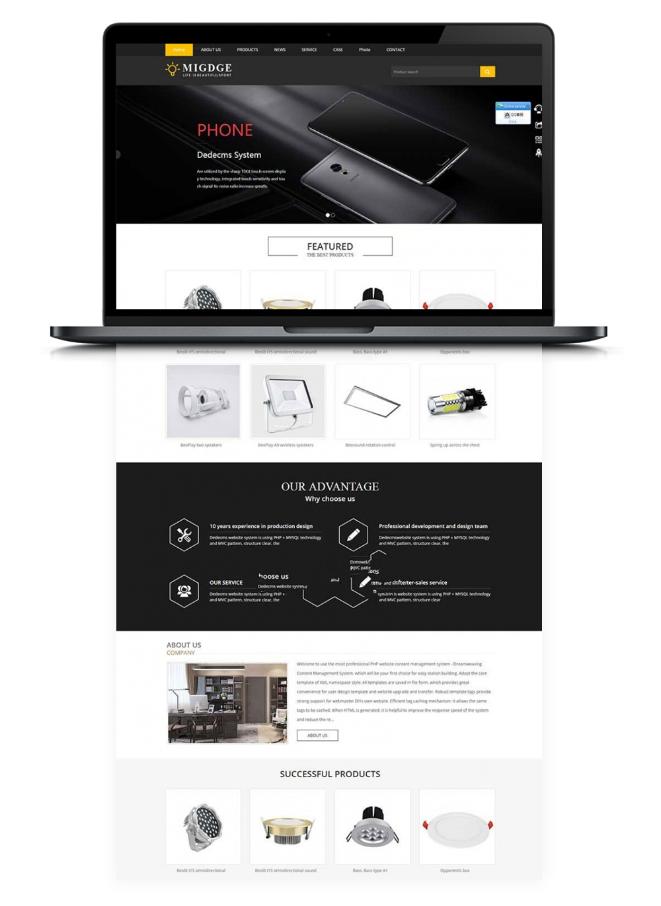 DEDECMS织梦黑色响应式灯具灯饰欧美外贸网站模板自适应手机WPA