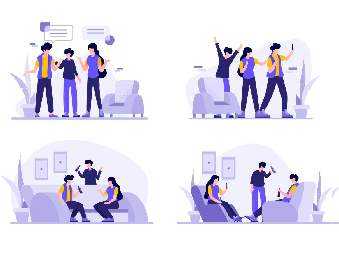 聊天会议场景插画源文件,交流沟通场景插画AI源文件下载