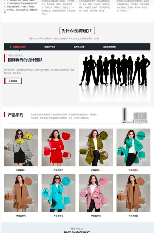 本套织梦模板采用现在非常流行的全屏自适应布局设计,且栏目列表以简洁,非常时尚大气。页面根据分辨率大小而自动排版,很大程度上改善了页面宽度兼容问题,适应大部分显示器分辨率尺寸哦。模板整体以多种颜色为主色调,适合做各种类型的网站。 同一个后台管理 三网合一简单方便,体验极佳 1、该模板代码干净整洁; 2、效果相当的炫酷,相当简洁大气高端,模板简单,全部已数据调用,只需后台修改栏目名称即可 3、适用于工作服定制织梦模板、服装定做网站源码; 4、网站手工DIV css,代码精简,首页排版整洁大方、布局合理、利于SEO、图文并茂、静态HTML; 5、首页和全局重新做了全面优化,方便大家无缝使用; 6、带有XML地图,利于搜索引擎收录和排名优化