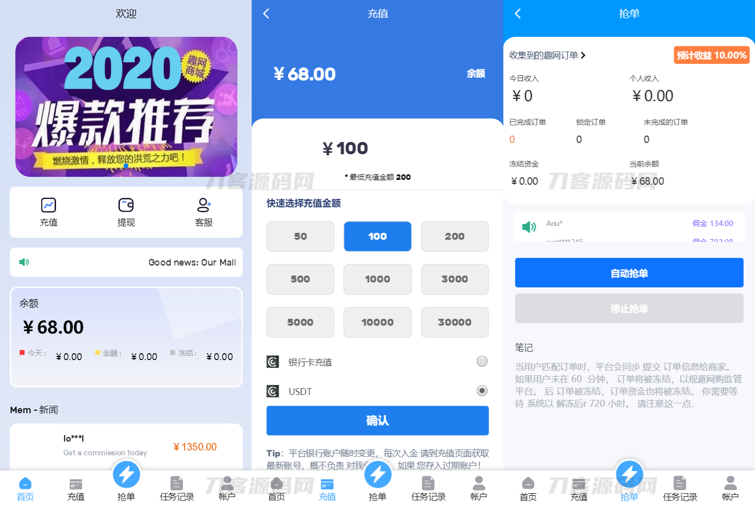 2024全新多语言海外抢单刷单系统源码 订单自动匹配 支持分组 代理后台