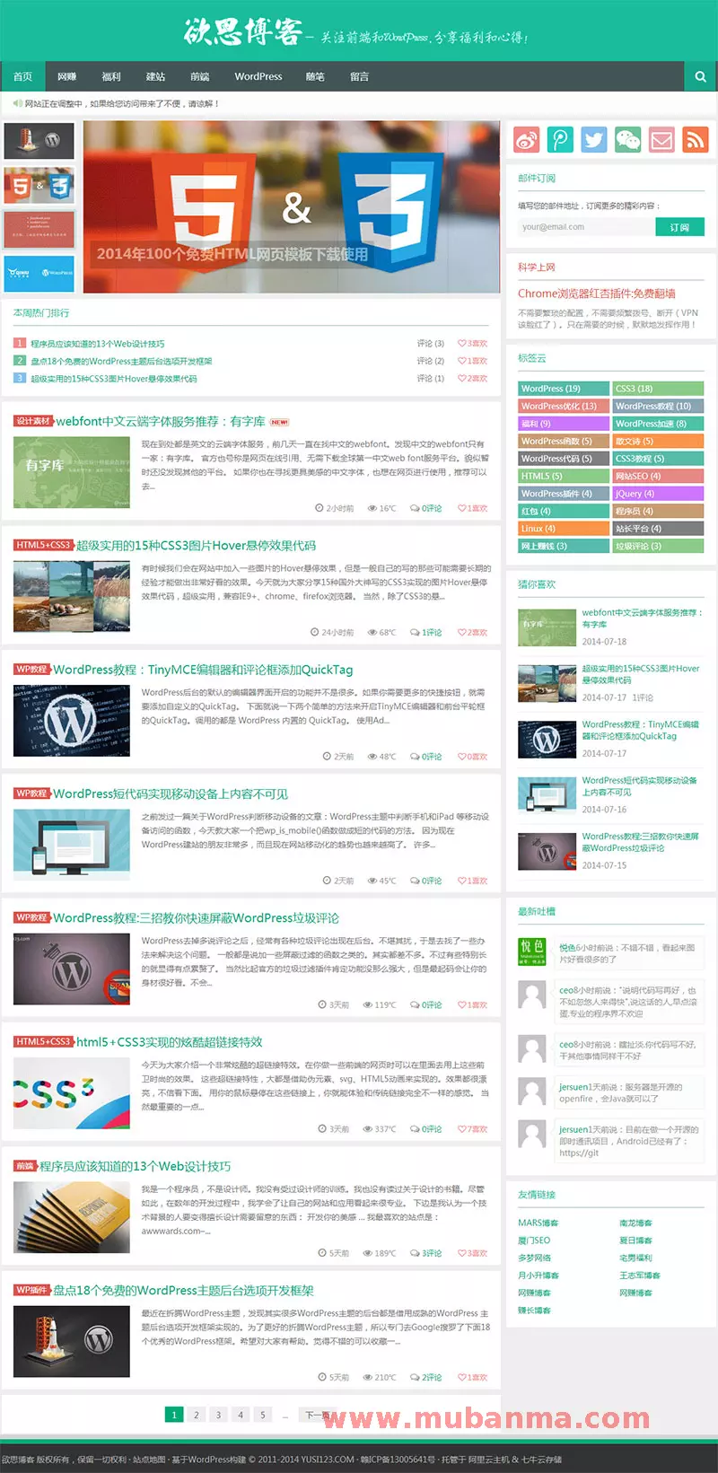 博客主题源码Yusi版本1.0,简洁明了的WordPress