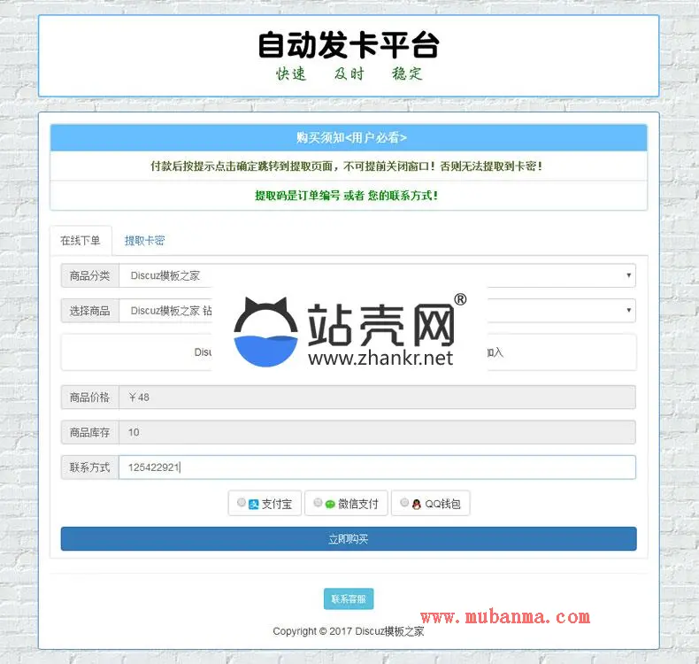 自动发卡源码的现有第三方支付接口是免费对接使用,若此第三方支付接口出现问题,跟自动发卡源码无关!