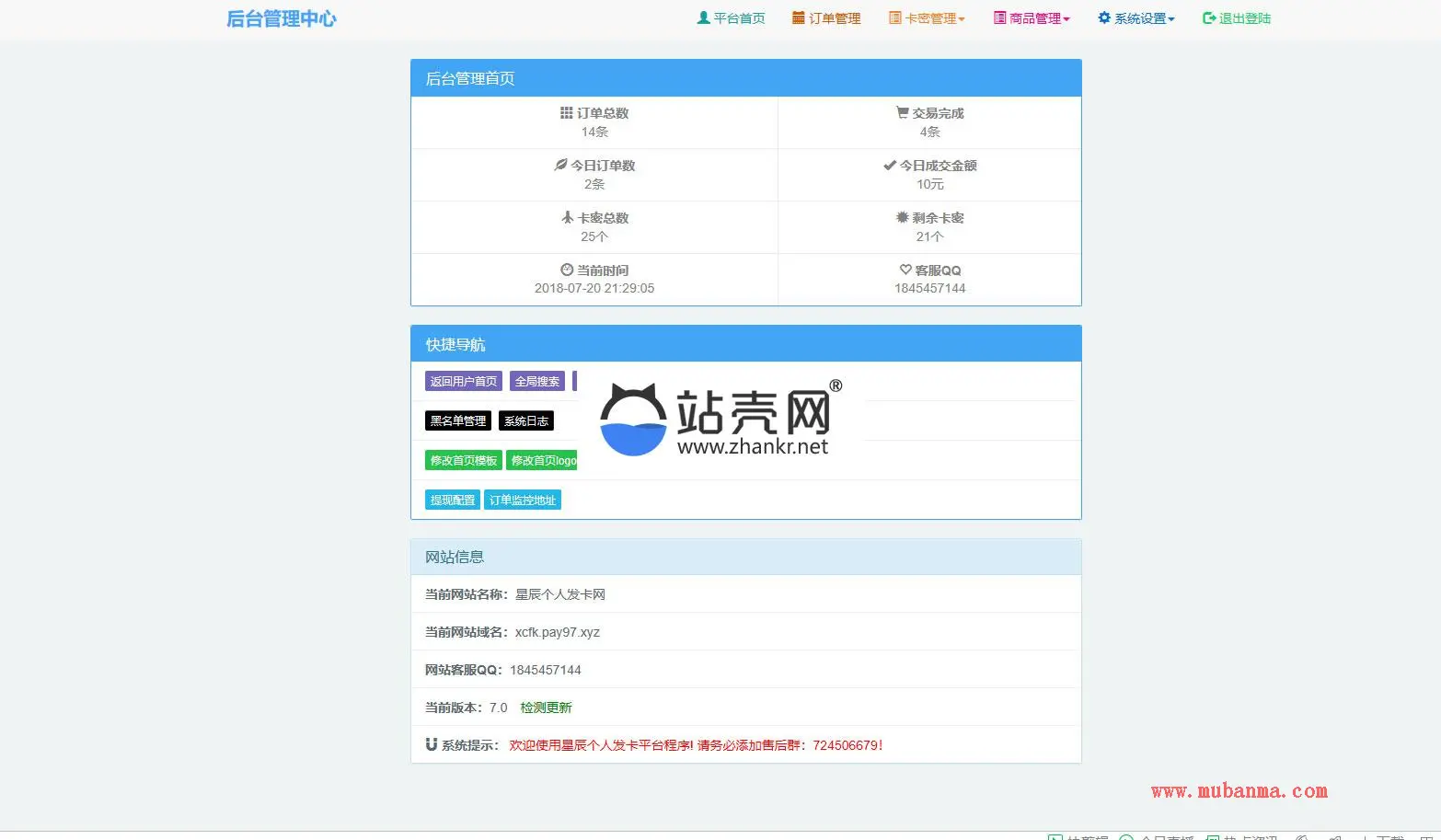 3.后台=域名/admin 默认账号密码为admin admin 如果错误 就是admin 123456