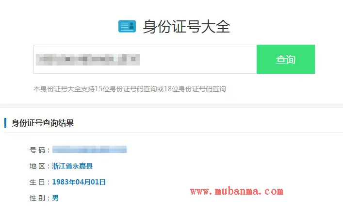 最新身份证号码查询源码html版本