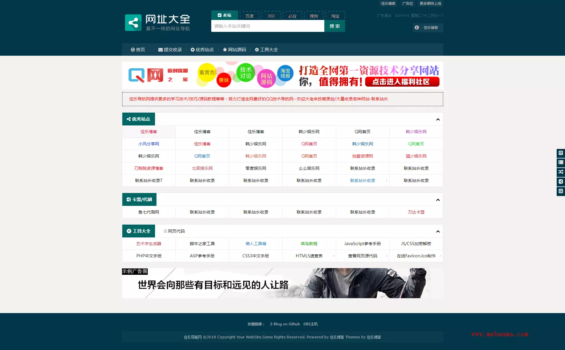 Z-BlogPHP米粒导航网主题模板,非常适合用来做网址大全导航网站 模板是zblog系统的,操作很简单,所有东西都是后台控制,不需要你用代码修改 源码+数据库我都打包了,你们上传后台程序进行安装好,然后在主题管理导入主题模板就行了,最后一点就是数据库了,也是最重要的一点 登录数据库页面,然后把里面的数据文件全部删除掉,再上传我打包好的数据库即可 这样就好了!教程很简单 后台地址 /zb_system/login.php 默认帐号admin 默认密码admin888