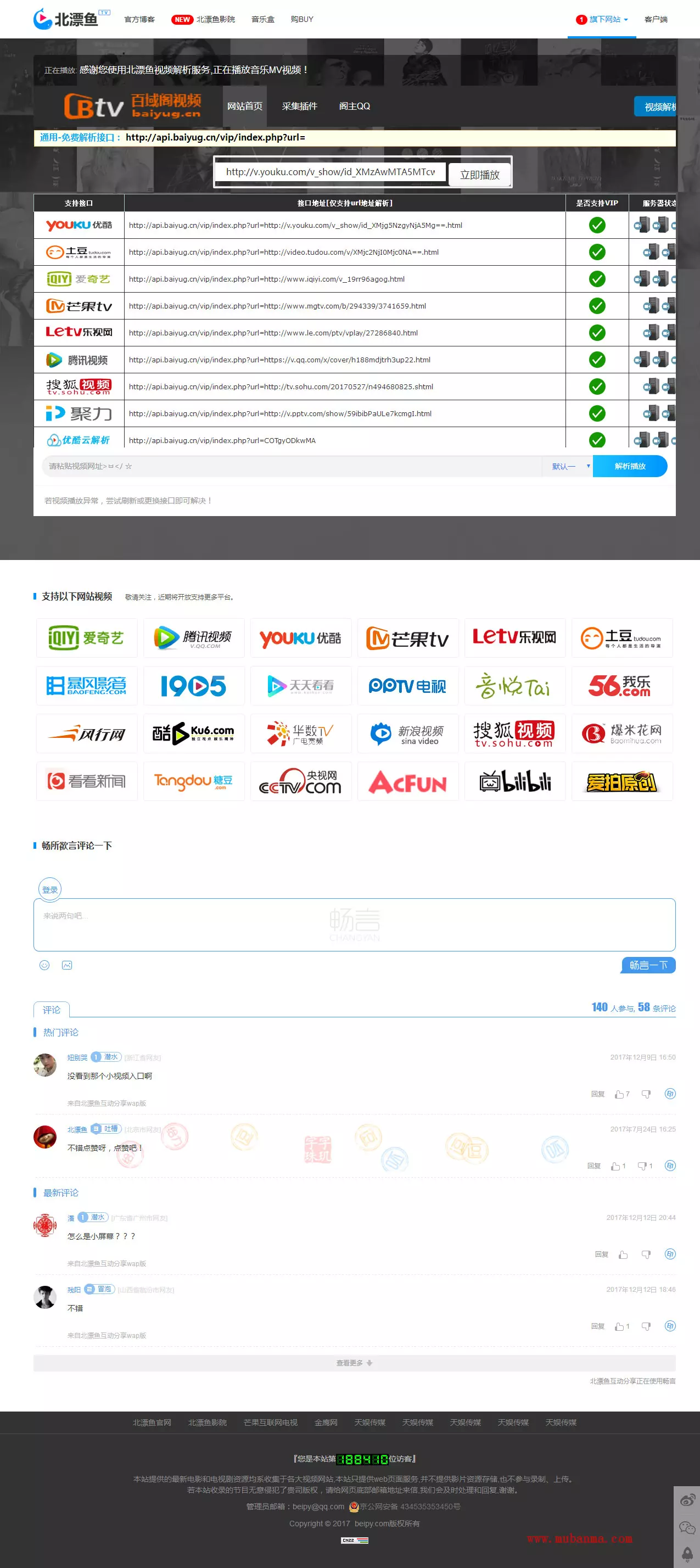 PHP北漂鱼vip视频解析源码 自适应手机端