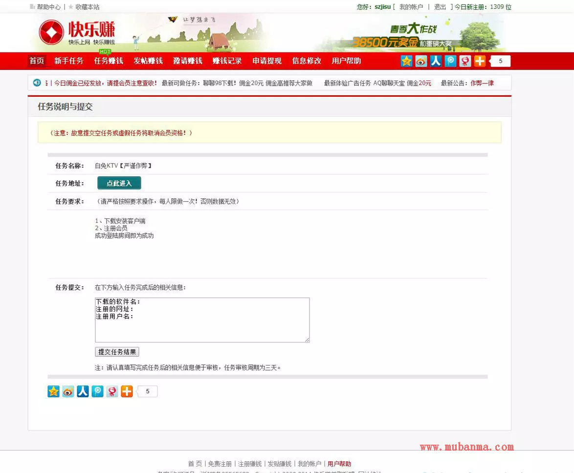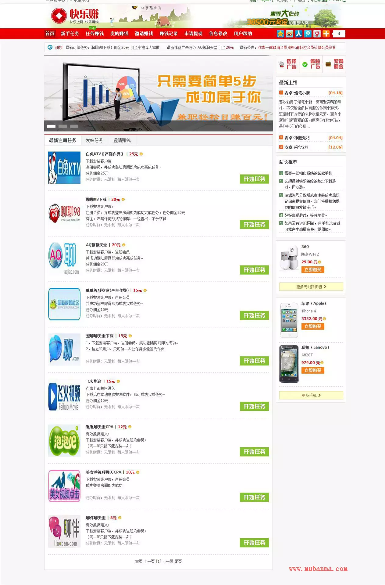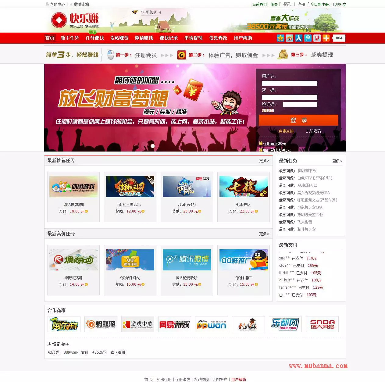 ASP快乐赚广告任务网站源码 CPA广告联盟系统平台 兼职网赚必备,ACCESS数据库