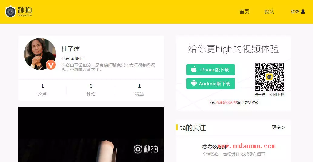 高仿秒拍视频网EMLOG主题模板,相似度非常高,EMLOG加上这款模板完全可以用来当做视频网站使用,这款模板可以插入秒拍网的视频,只需要输入秒拍网的视频ID就可以直接调用播放,并且支持直接调用MP4视频链接播放,调用优酷视频播放,当然你也可以使用html源代码调用视频。