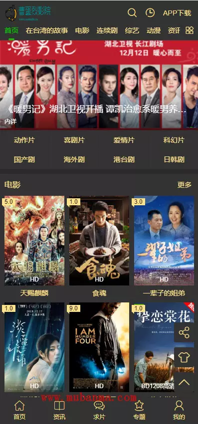 苹果cmsv10大气黑色风格响应式模板 PC+WAP自适应