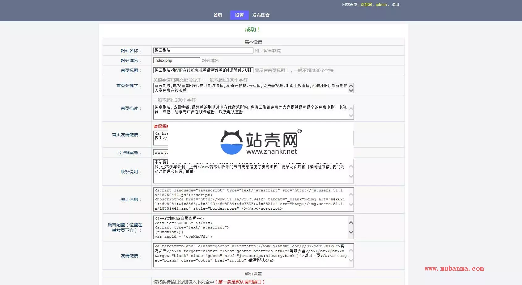 登录后台,点击设置影音进入添加或修改影音播放文件链接地址,