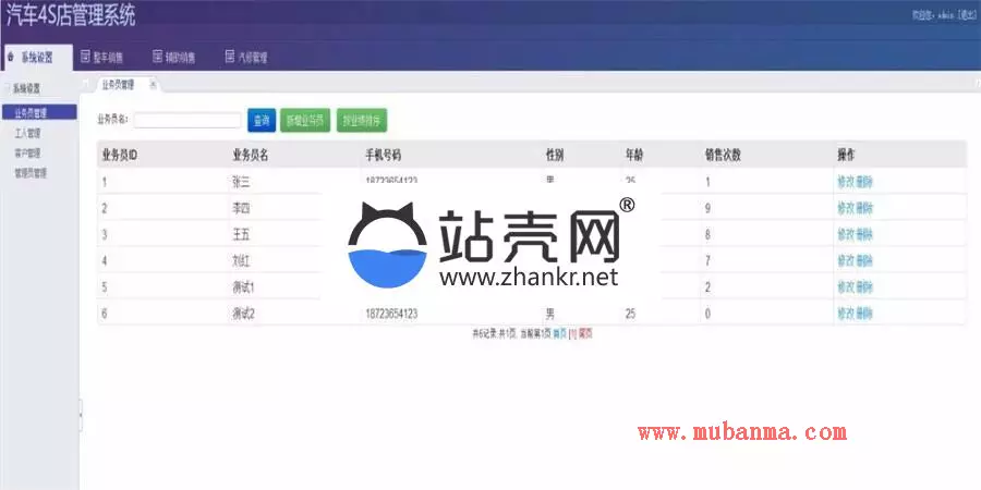 2.业务员管理(增删改查) 业务员就是卖车的表设计 员工编号 员工名 年龄 性别 销售次数(在后面的贷款办理或者全额付款模块每增加一条记录 记录中所对应的业务员 这边给这个业务员销售次数自动增加1)
