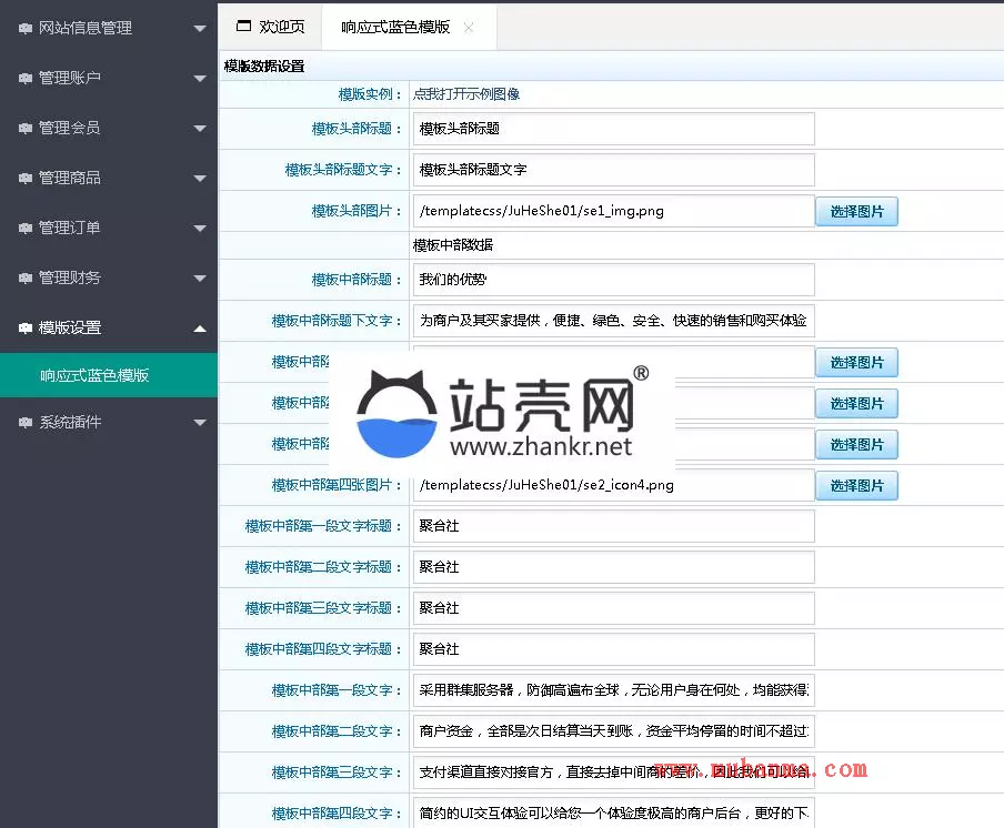 2.新增响应式模板 注:该模板数据需在后台-模板设置-响应式蓝色模版 里面设置