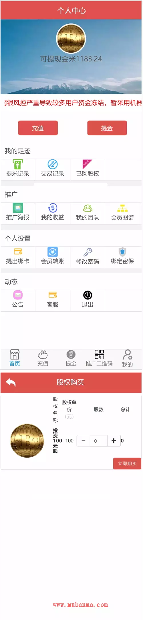 美信JR系统阳光资本整站源码,股权购买系统,带有团队系统,充值提现功能正常,可以自行对接第三方支付,带有完整安装教程,欢迎下载体验!