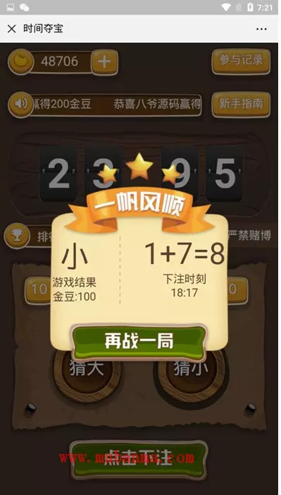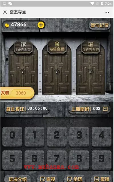 游戏含有:尾号夺宝 ,时间夺宝, 密室寻宝, 双人PK,(类似CP),农场大赢家, 幸运签到