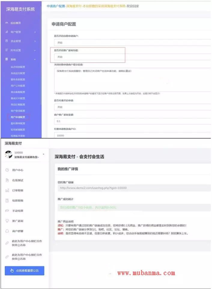 海易支付源码完全开源+未加判断MD5,支持前台注册和后台添加商户号+首页多套模板选择,深海易支付系统个人免签完美版带推广返利统计