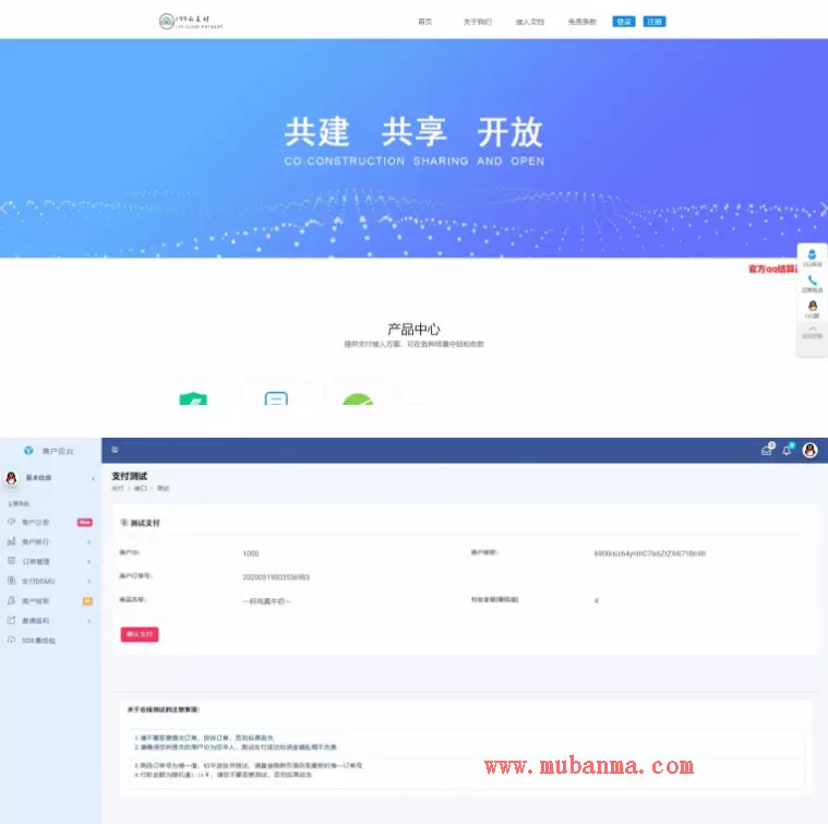 •强大商户管理系统,完善的网站系统配置,配备demo在线支付测试包。