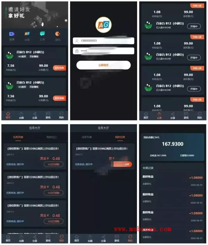 框架是共享充电宝的,但是前端二开成AG理财了,真的有创意,这套程序的作者绝对是人中龙凤,鬼才啊!