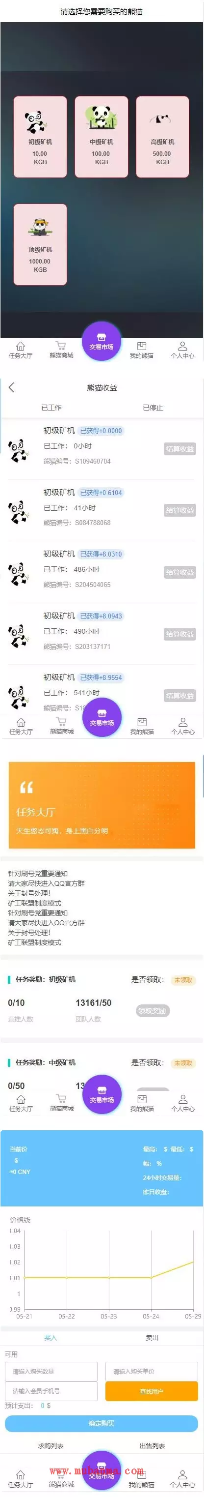 新版区块链/资金盘/虚拟币/挖矿/带曲线图/熊猫矿机/金融投资理财赚钱源码