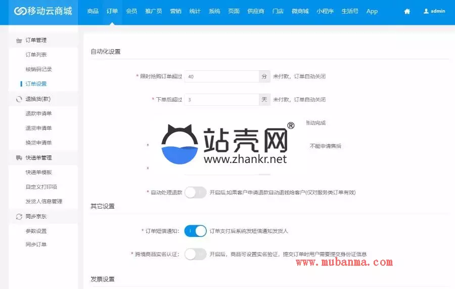 2、新增多种发票类型,电子发票、专用发票三种发票类型;后台可设置是否支持该种发票类型,并可以设置普通发票和专用发票的不同税率。