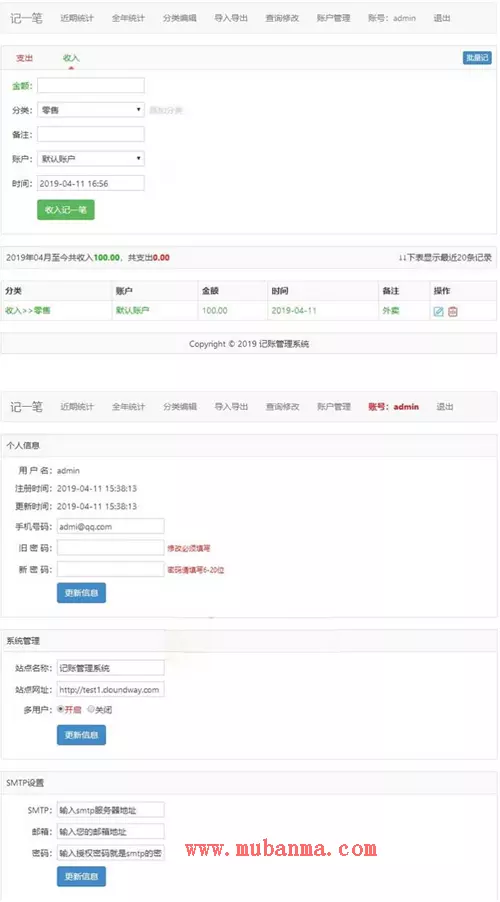 PHP家庭在线记账理财管理系统源码,让你对自己的开支了如指掌,图形化界面操作更简单,非常适合杂货铺/家庭理财、记账,系统界面简洁优美,操作直观简单,非常容易上手。后台功能强大,支持数据导入。