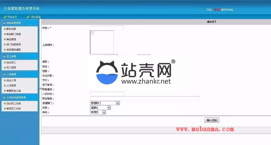 1、基础信息管理:职务信息管理、所有部门信息、角色管理、部门信息管理、修改登陆密码 2、员工管理:添加员工、员工管理 3、公告信息管理:添加公告信息、公告信息管理 4、工作任务信息管理:添加员工任务、管理员工任务 开发环境为Visual Studio 2010,数据库为SQL Server 2008,数据库文件在数据库文件夹中。