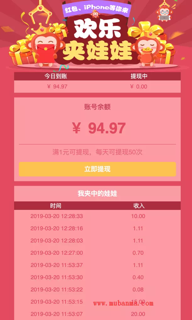 微信夹娃娃赚钱 1.老友每玩一次,都有佣钱; 2.老友玩5元夹,奖赏0.5元, 老友玩10元夹,奖赏1元, 老友玩20元夹,奖赏2元。 3.只需发朋友圈,群发,发群,5级分佣,越线代理,赚点越多 4.让老友变成自个的下线,让老友推行,能赚更多钱。 运行环境:MYSQL 伪静态 php5.3