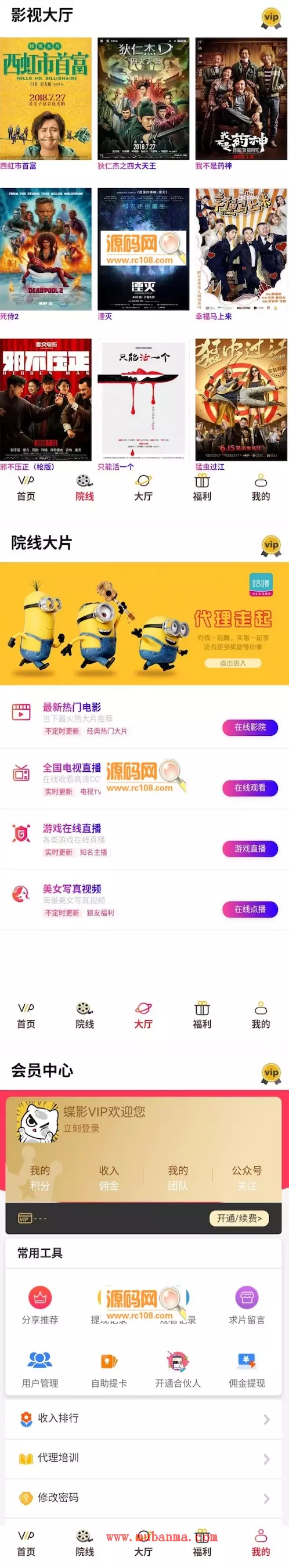 适用范围: 五级分销版蝶影全网VIP影视APP源码,安卓+苹果iOS双端+搭建教程 运行环境: php+mysql 源码详细: 2019最新发布美化版蝶影全网VIP影视APP源码,带五级分销,全新界面美化!附带安卓苹果双端APP,带完整数据,内包含搭建文字教程!最新修复若干bug!