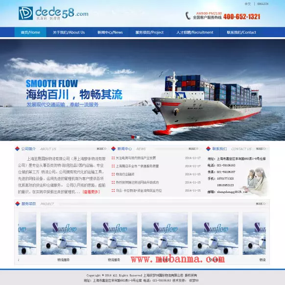 模板介绍: 页面简洁简单,容易管理,DEDE5.5内核以上都可以使用;附带测试数据! 模板特点: 适合物流类企业网站使用,简单便捷, 中英文版,适合现在的企业使用, 易于管理,一款值得拥有的织梦网站模板。 简洁美观大方的设计风格,图片展示效果绝佳。 页面结构简单,利于SEO的优化,模板后台易于管理。 使用程序: 织梦DEDECMS5.5以上版本都可以使用。 模板页面: index.htm 首页模板 head.htm 头部模板 footer.htm 底部模板 article_article.htm 内容页模板 这里不一一列出! 温馨提示: 按照正常的织梦安装步骤来安装还原就可以用了,从后台重新点击保存下系统基本参数。 系统>系统基本参数> 保存(确定)。