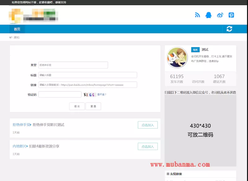 【后台程序】PHP语言编写 【运行环境】整站程序采用PHP+MYSQL架构后台使用dedecms,PHP推荐为5.2和5.3 【源码语言】UTF-8 【后台地址】/dede 【后台账号】admin cnmmm.com 【程序说明】百度云盘群组链接分享,实现一键分享百度群组链接,一键加入百度云盘群组的功能,开发的api可以实时获取百度云群组信息,无需软件,支持php的任何服务器或者虚拟主机,都能完美兼容!响应式界面,PC、WAP自适应。本程序采用定制版内核开发制作而成,极度精简,冗余代码极少,专为百度云分享而生。 【安装流程】删除install下install_lock.txt,更改index.php.bak为index.php,按照dedecms的安装流程进行安装,安装完成后进入后台/dede,系统——数据库备份/还原,数据恢复(稍等片刻),网站更新。