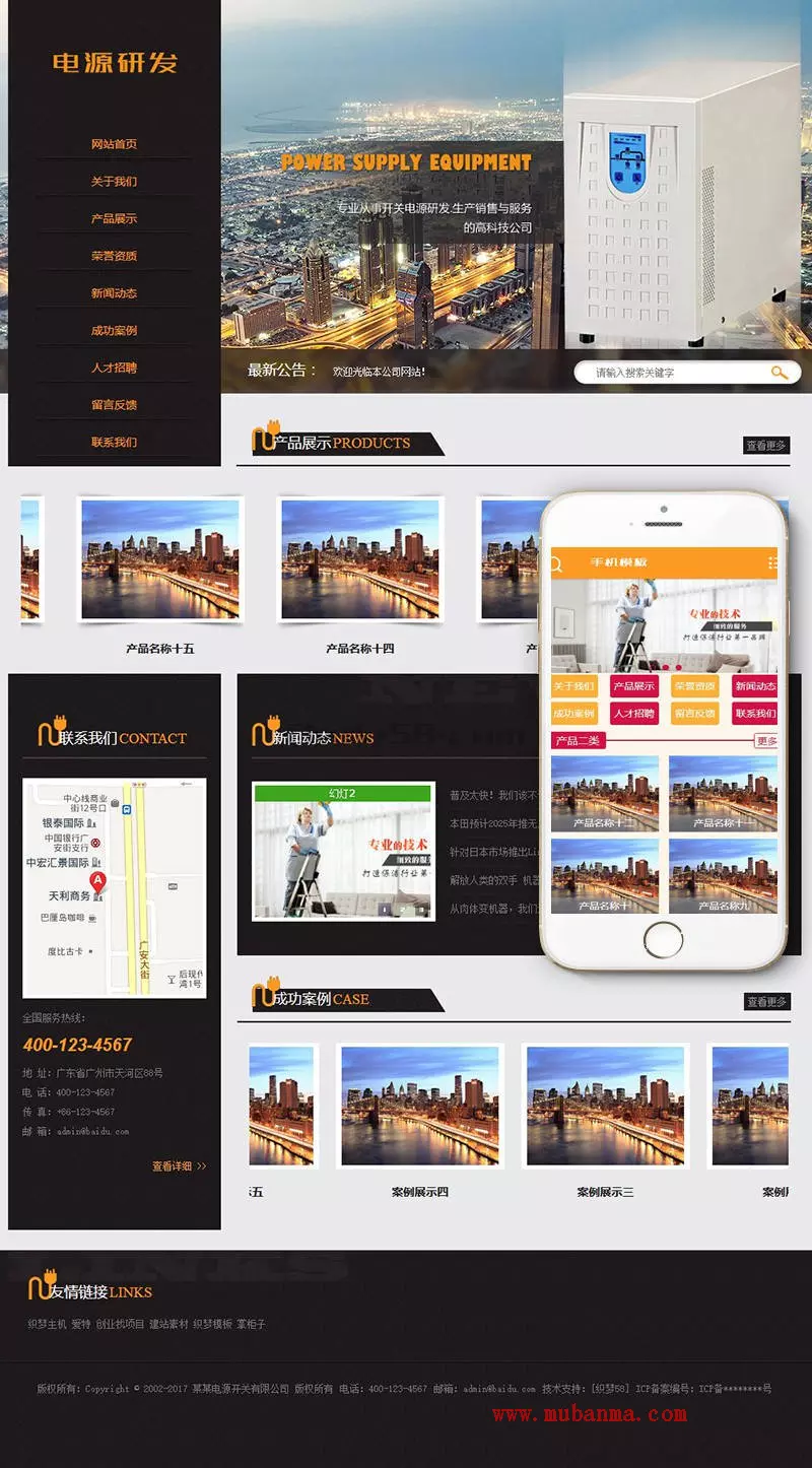 织梦最新内核开发的模板,该模板属于企业通用类、电源、开关研发销售类企业都可使用, 这款模板使用范围极广,不仅仅局限于一类型的企业,你只需要把图片和产品内容, 换成你的,颜色都可以修改,改完让你耳目一新的感觉! 自带最新的手机移动端,同一个后台,数据即时同步,简单适用! 原创设计、手工书写DIV+CSS, 完美兼容IE7+、Firefox、Chrome、360浏览器等;主流浏览器; 页面简洁简单,容易管理,DEDE内核都可以使用;附带测试数据!