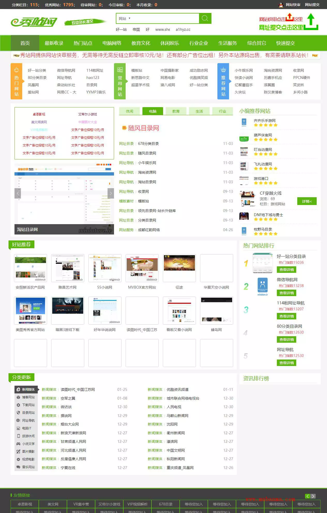 帝国CMS内核仿秀站网网址导航分类目录网站源码,支持网址提交功能等