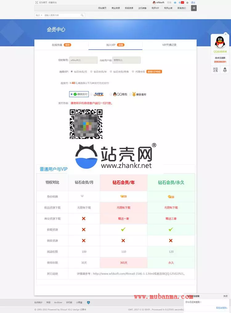 1、用户打开购买VIP页面,按页面按提示扫一扫或者直接转帐至站长个人帐户。
