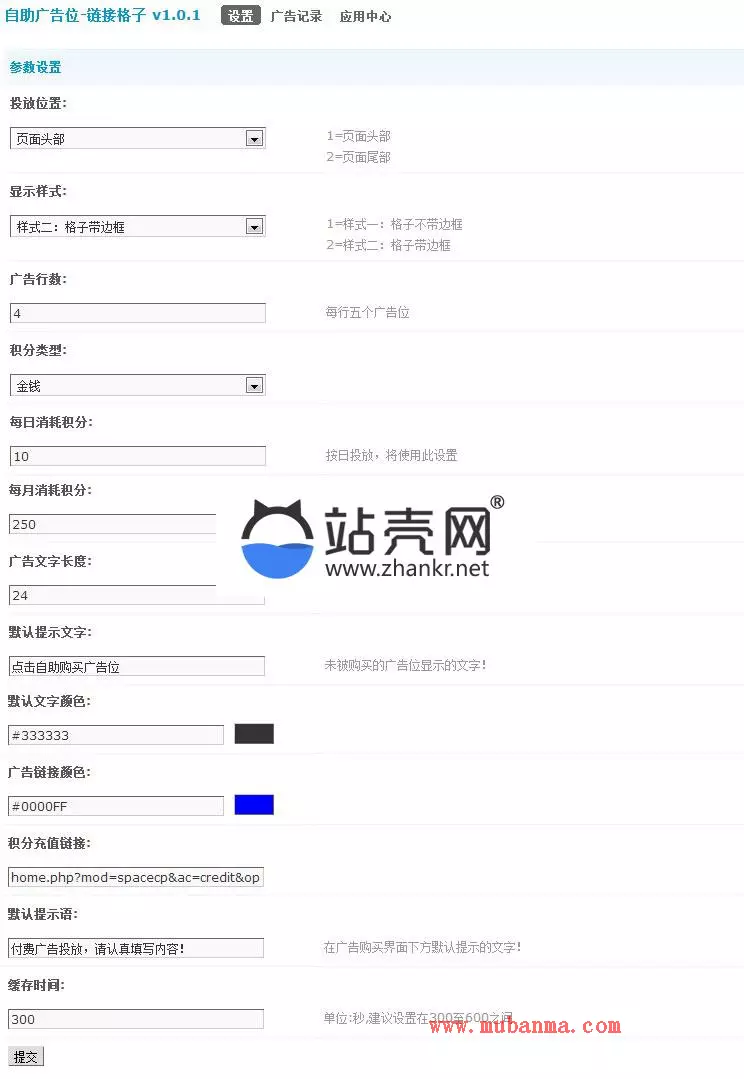 本插件实现在页头或者页尾下面搭建一个格子广告位,实现会员消费积分自助投放,可自定义显示位置、显示样式、链接颜色,方便实用!