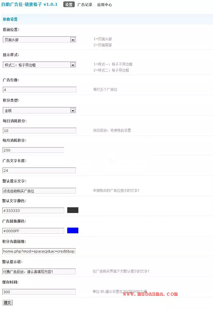 Discuz x3.x插件 链接格子自助广告位v3.5.2 商业版 本插件实现在页头或者页尾下面搭建一个格子广告位,实现会员消费积分自助投放,可自定义显示位置、显示样式、链接颜色,方便实用!