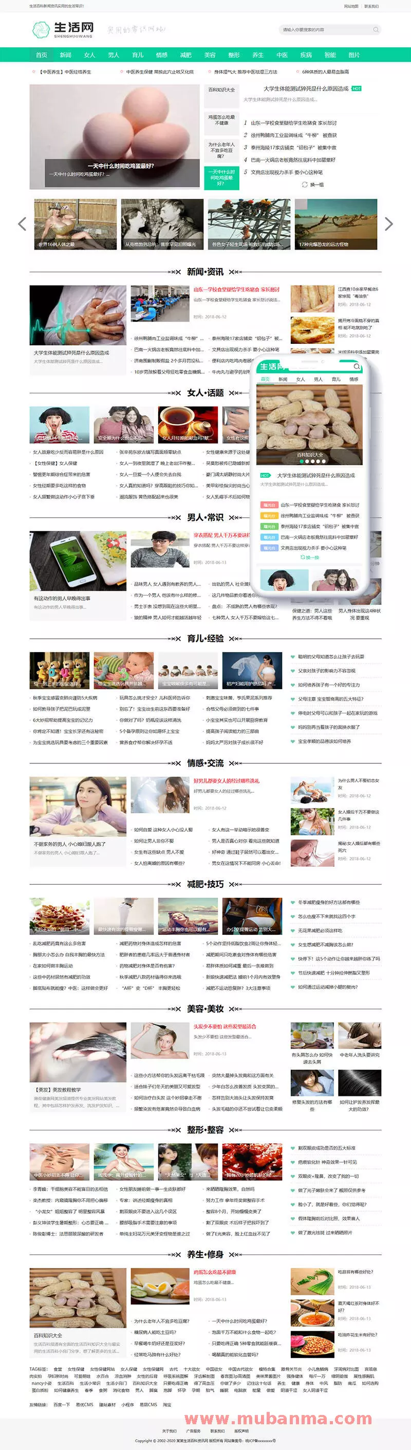 模板名称:生活百科新闻资讯网类网站织梦模板(带手机端)+PC+wap+利于SEO优化