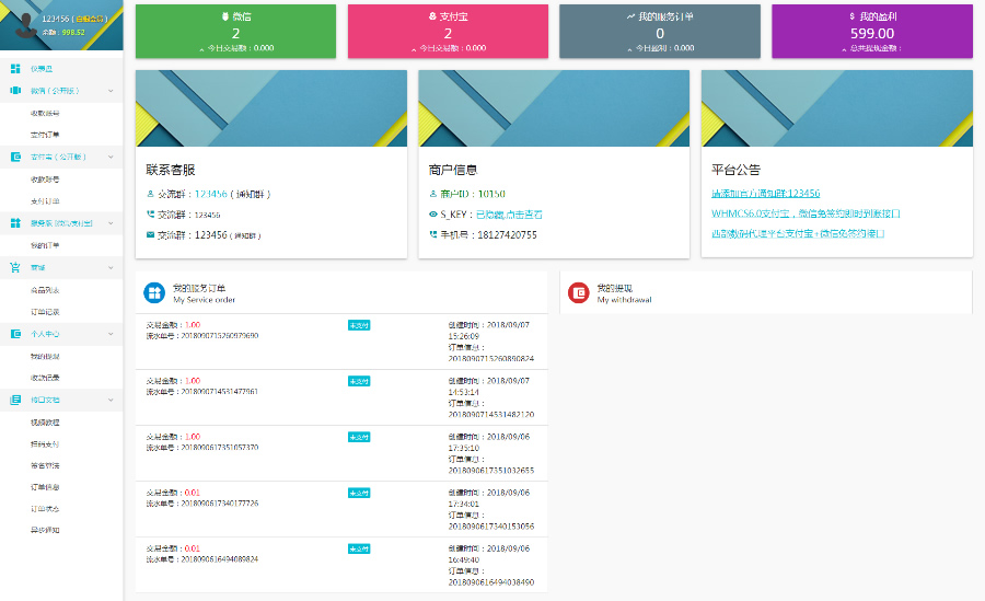 3、公开版,商户自行收款,钱直接到商户帐号,需要预存手续费。