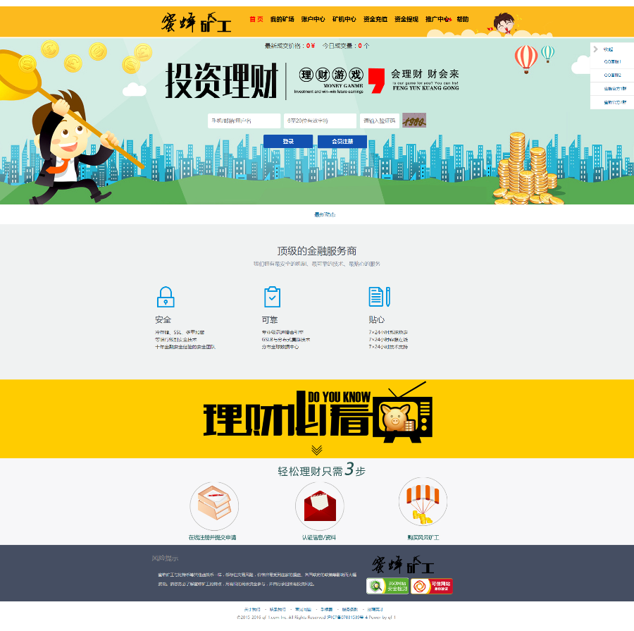 1.购买风云币矿工为你赚取风云币,最低10元就能参与的理财游戏,每个矿工10元,每天能为你赚取2元的风云币,每个矿工赚到16元后退休。