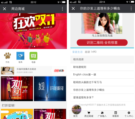 1.软文推送:微信文章推送阅读,后期将发展为使用户投稿模式